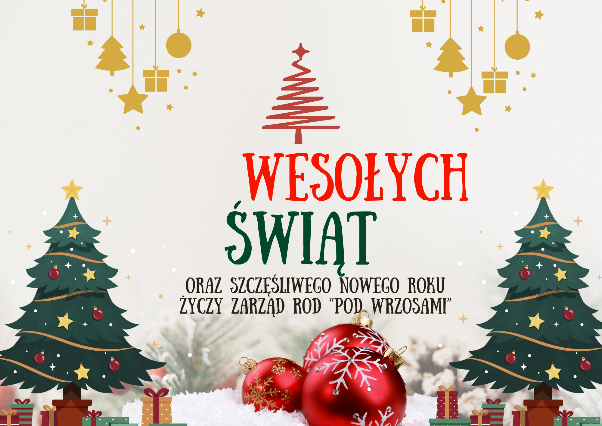 Wesołych Świąt oraz Szczęśliwego Nowego Roku 21 grudnia 2025 | Brak komentarzy Zarząd ROD „Pod Wrzosami” pragnie złożyć wszystkim działkowcom najlepsze życzenia świąteczno-noworoczne. Categories: Brak kategorii